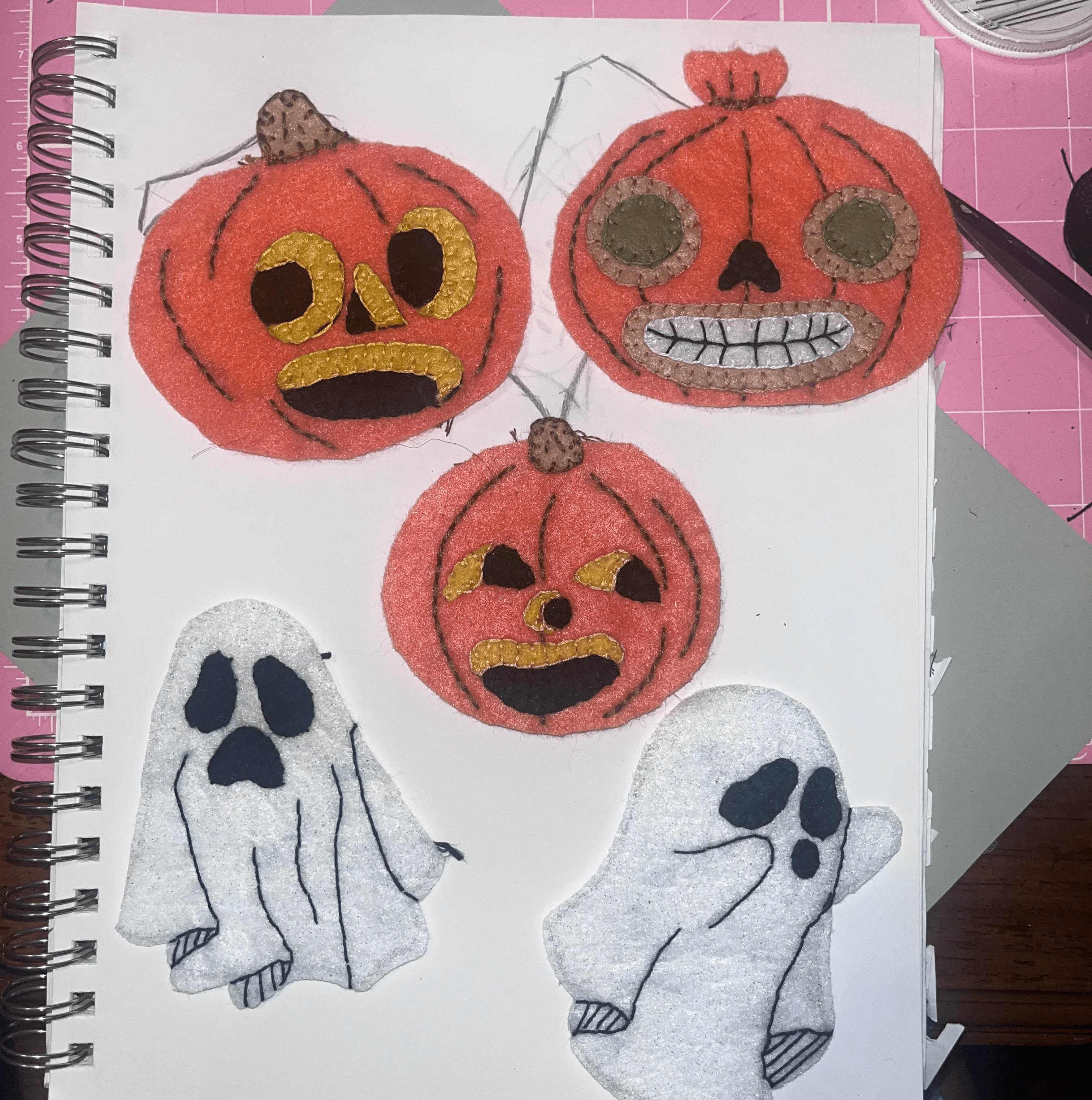 this is what they look like w all the face pieces stitched on, you can see some details were just stitched using a running stitch:)